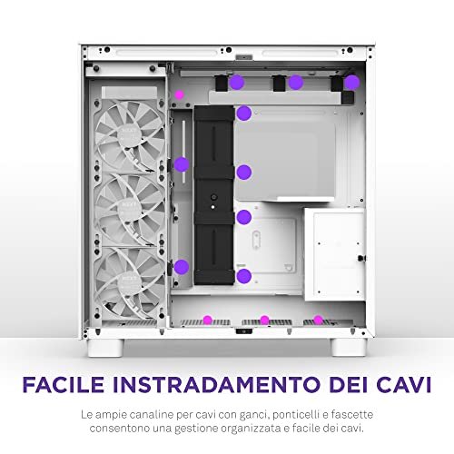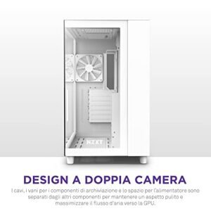 NZXT H9 Flow雙室ATX中塔PC遊戲箱–高氣流穿孔頂板–鋼化玻璃前板和側板–360mm散熱器支架–電纜管理–白色