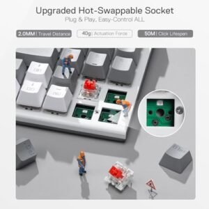 - Hot-Swappable Red Switches – Hot-swappable with almost all switch types in the market no matter 3-pin or 5-pin. Quiet basic linear mechanical switches. soft key travel makes every click easy to register. Easy to mod or update it with your wishing preference. no forum researching required.